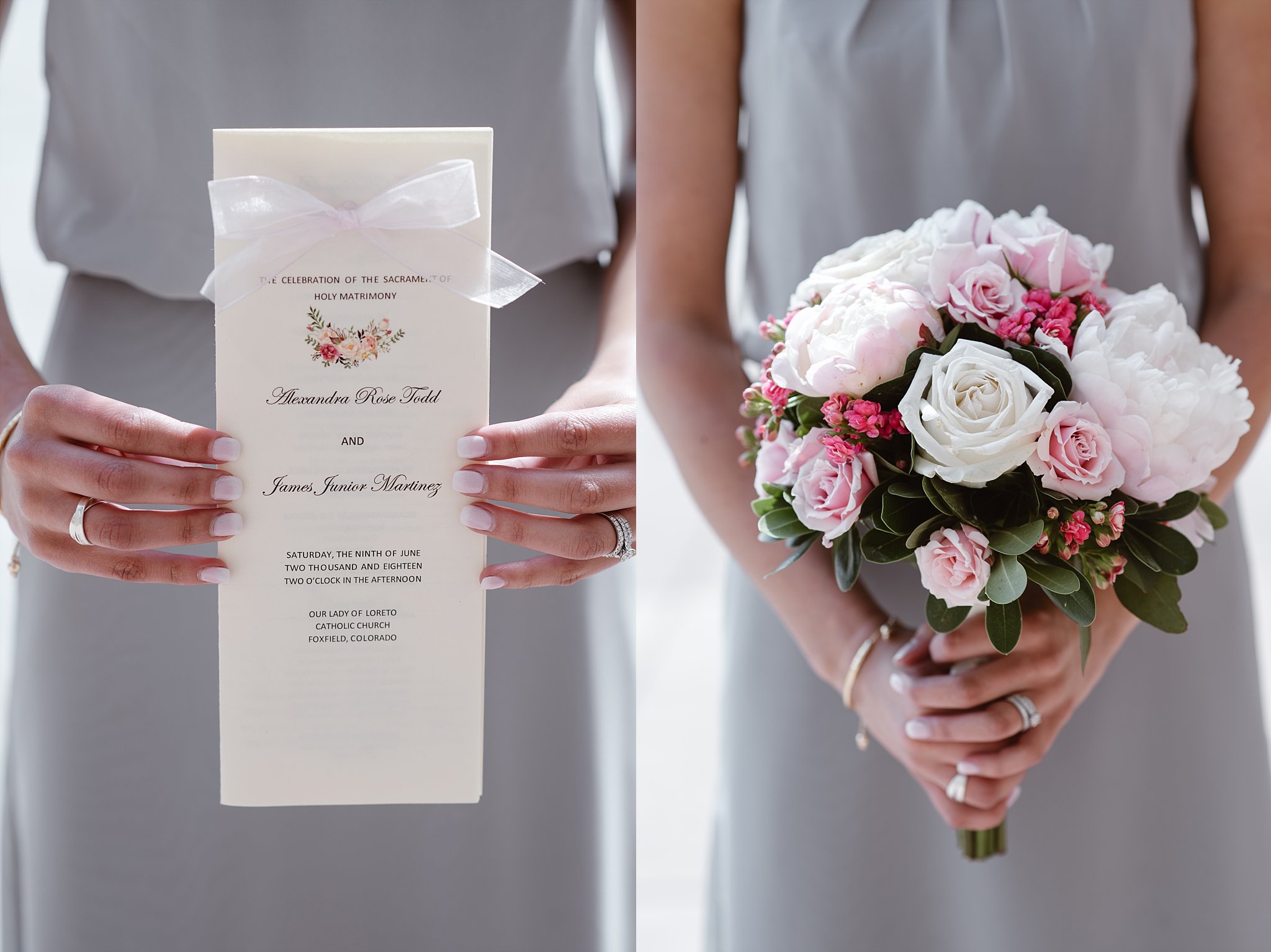 Such an elegant and timeless wedding at the Cherry Hills Golf Club! The day started over at Lady of Loreto and let me tell you this church absolutely took my breath away. Such incredible architecture at Lady of Loreto. The stained glass windows and high vaulted ceilings made for such a dramatic ceremony for Jimmy and Alex. Alex and her bridemaids getting ready at the room overlooking the ceremony site was fun for me to observe. Each of her girls would tear up at random moments or make Alex laugh and smile. I loved how close they all were with Alex’s Mom as well. You could see just what a close knit group this day was going to feel like. Which was incredible as it was one of the largest weddings I’ve photographed in a while. It says so much about Alex and Jimmy and their families with just how close they were to all the guests and family that came to celebrate and share in the joy of their beautiful day.