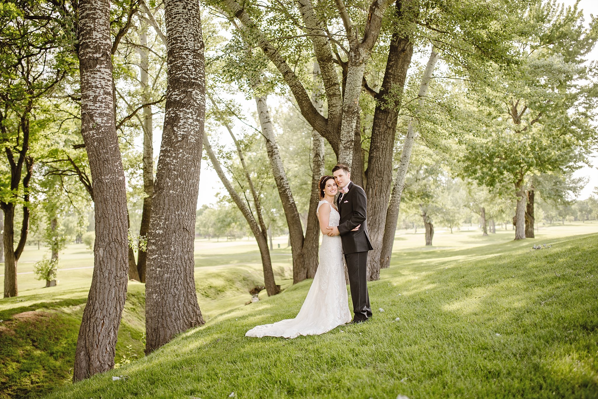 After their stunning ceremony at Lady of Loreto they all headed over to the gorgeous Cherry HIlls Golf Club. Oh my goodness…equally impressive as the reception overlooks the foothills and mountains. And one of my favorite things about their reception was all the gorgeous Cotton Wood Trees that surrounded the venue. It reminded me a bit of Illinois. I loved having Alex and Jimmy’s portraits tucked into the grove of trees. Getting to see the way Jimmy would make Alex laugh or the way they easily relaxed into each other was so beautiful. You could see how in love they were with each other.